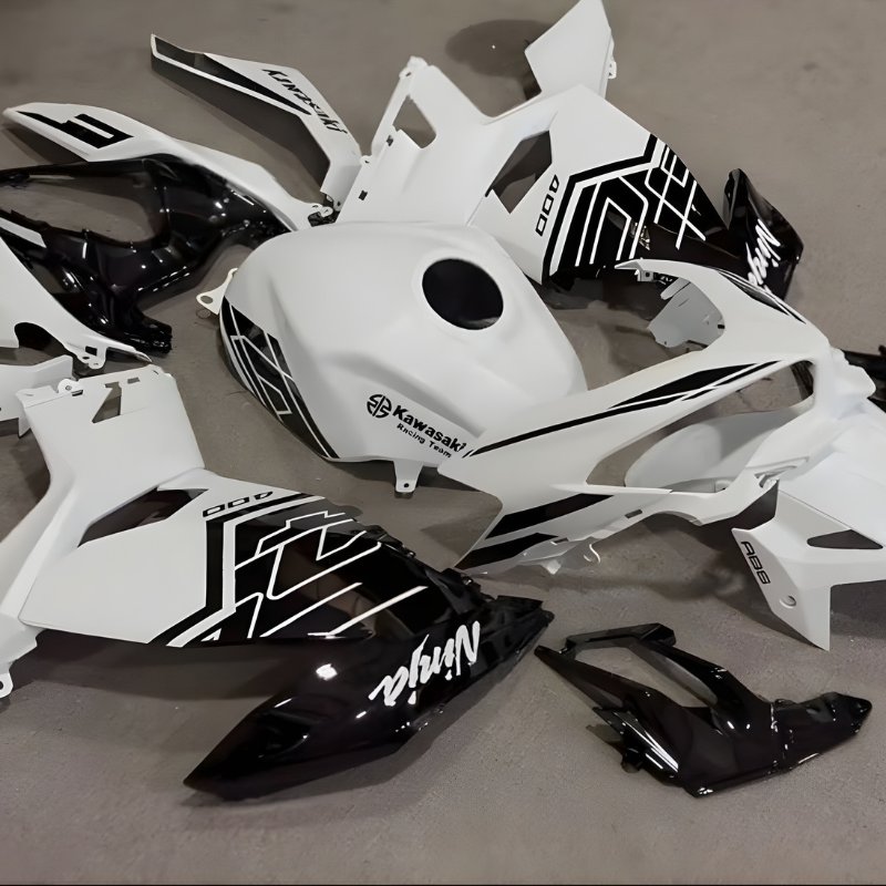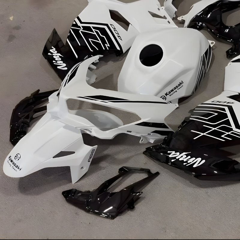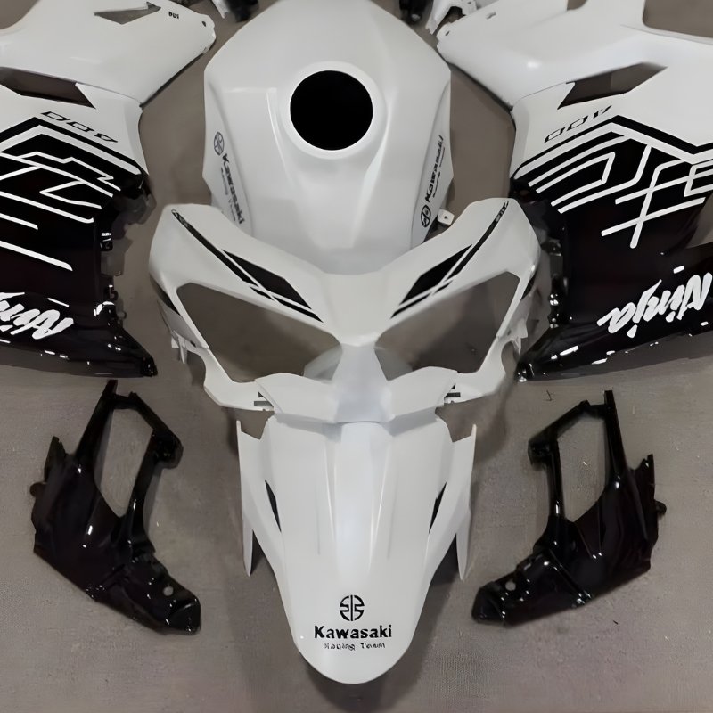 Pearl White is one of the most difficult finishes to execute perfectly in the aftermarket world. Most factories produce a “flat” white that looks like a toy. PROKHAR’s custom paint fairings utilize a multi-stage pearl coating that captures and reflects light, giving your Ninja 400 a “wet,” multi-dimensional look that rivals factory boutique editions.