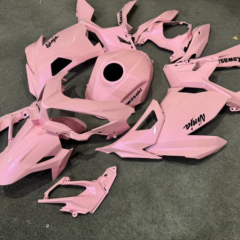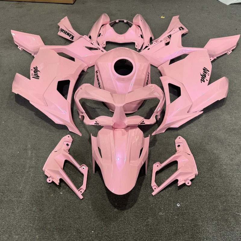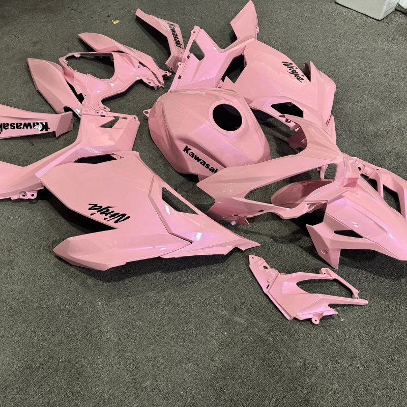 Achieving a smooth, “liquid” gradient on a Ninja 400 isn’t just about spraying paint—it’s about layering. Most budget fairing kits have visible “dots” or hard lines where the colors meet. At PROKHAR, our master painters use a multi-stage process with high-end imported pigments to ensure the pink special finish transition is perfectly diffused.